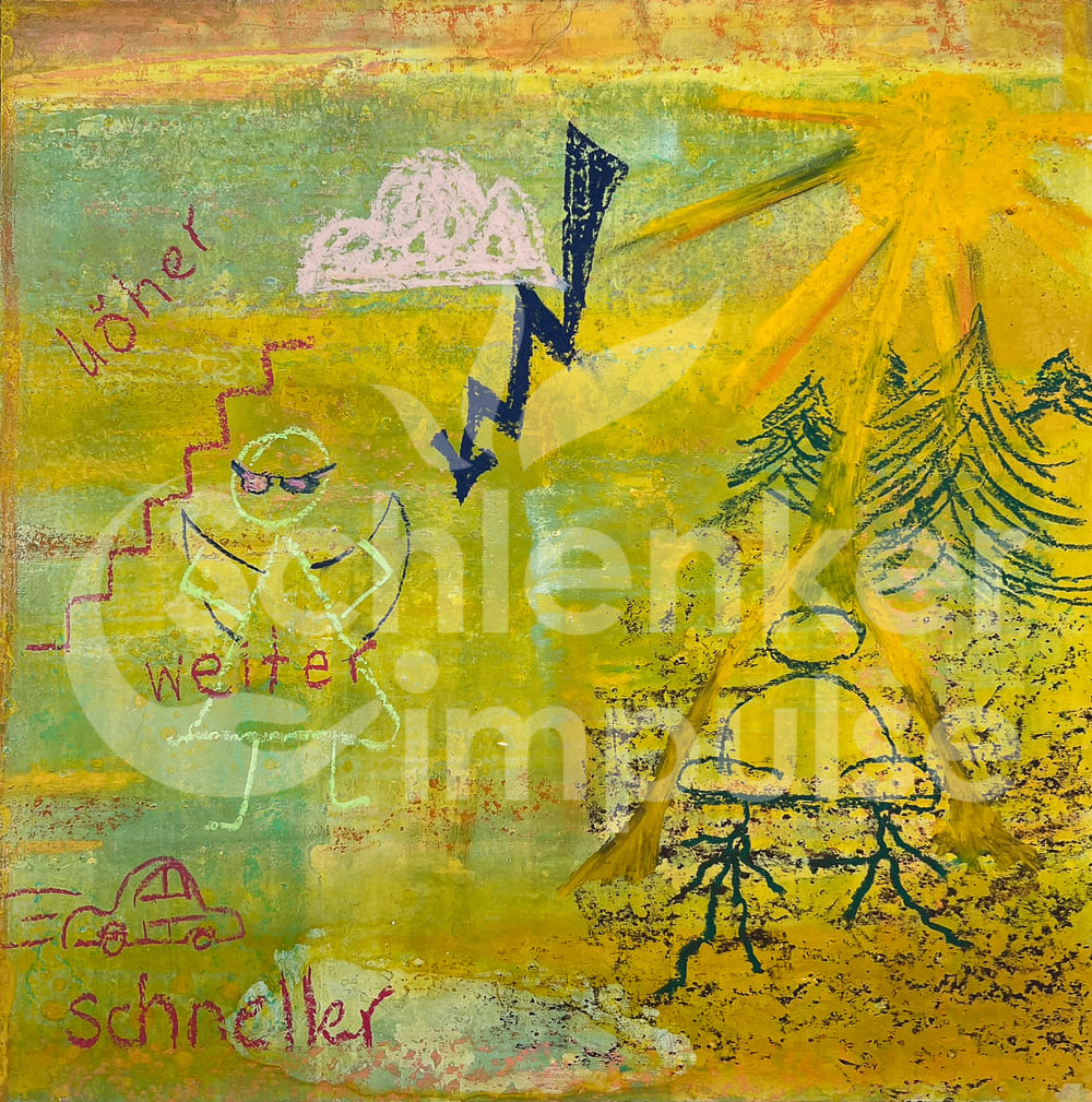 Die verborgenen Ebenen zum Gemälde „Höher, Schneller, Weiter und dann kam der Krebs“.